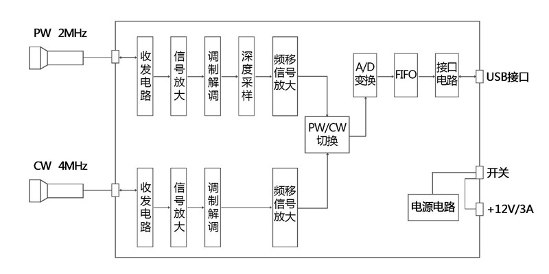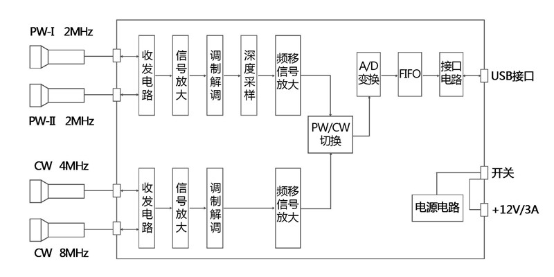 KJ-2V4M超聲經顱多普勒血流分析儀工作原理框架圖(單通道)
